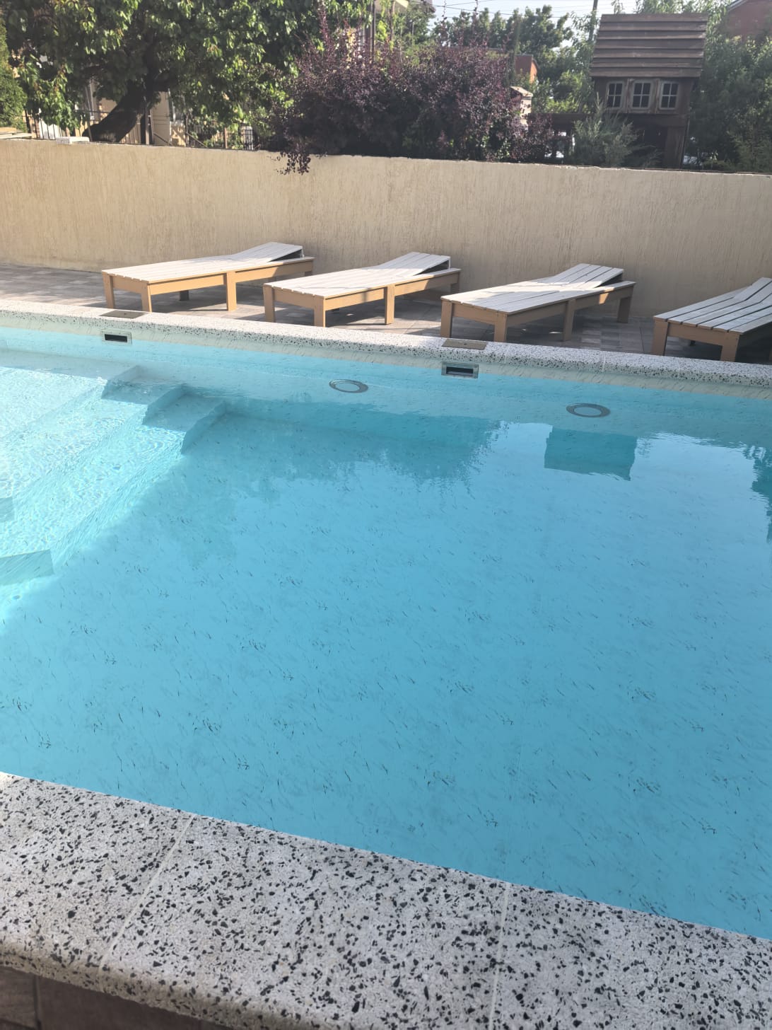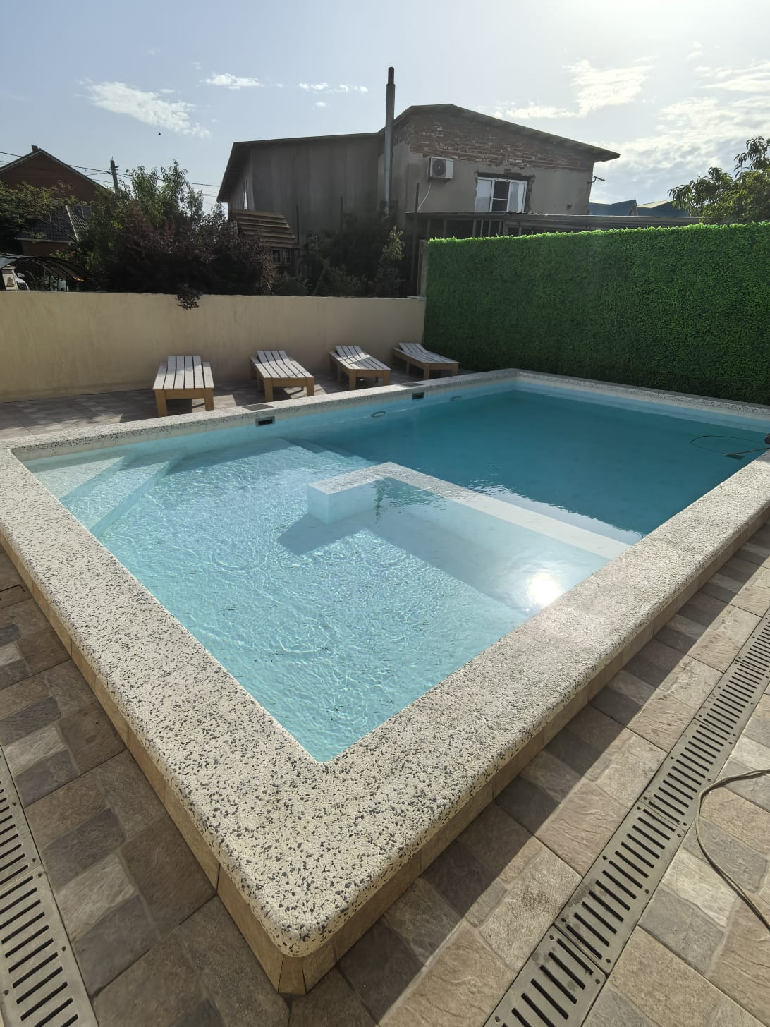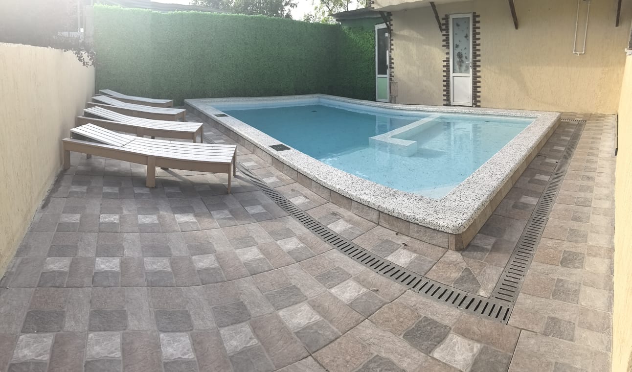На территории гостиницы расположен бассейн с подогревом, подсветкой, "лягушатником", а также зона отдыха с шезлонгами.